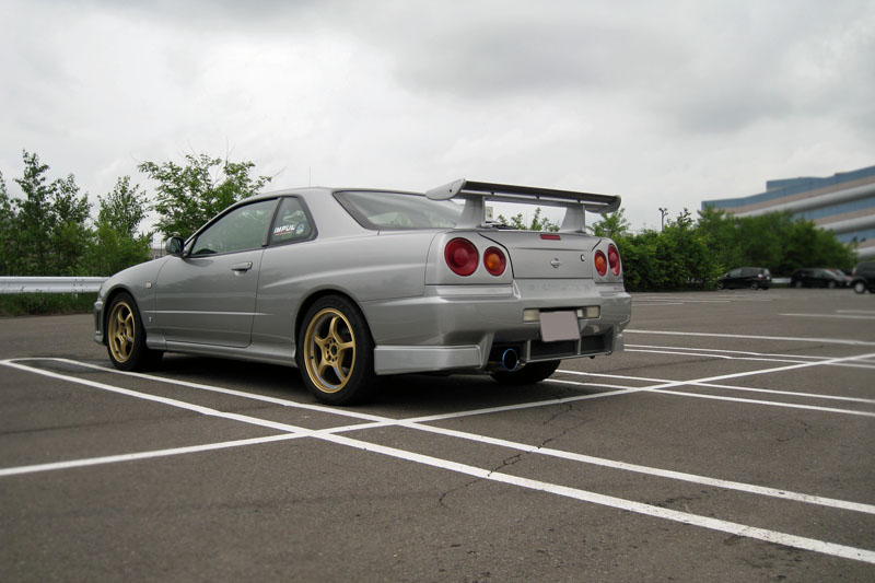 BNR34純正リアウイングをER(ENR34)の純正リアウイング穴にポン付けできることをスカイラインネットワーク(SNS)より情報を頂きましたので探していたところ、ご厚意によりBNR34純正リアウイングを破格値で購入させて頂くことが出来ましたので(誠にありがとうございます。!!!m(__)m)、長年の念願叶ってリアウイング交換となりました。同時に併せて後方視界についての懸念を複数の皆々様よりご指摘頂いたため、マウントというか高さを変える物がないか探したところ、NIGHT