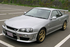 (BNR34純正リアウイング+NIGHT PAGER リヤウイングスペーサー(R34 GT-R専用)5cmタイプ)