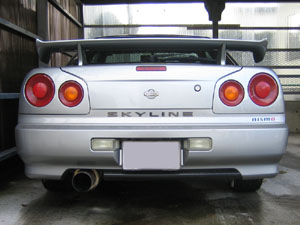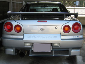 実は2005年の秋にバンパー交換した直後に家の前でバックしていて(車庫から出ようとして)、雪というか氷の塊にリアバンパー左後ろあたりをヒットし、まさか氷で傷とかは付かないだろうなんて思ってましたが結構な勢いだったらしく塗装が禿げ始めて3年間・・・。またやるかもしれないというのと、自分では綺麗に修正できそうもなかったのでなんとなくそのままに3年間も放置してしまいましたが、だんだん塗装はがれの領域が広がってきたため、日産のクイックペイントをお願いしてみました。