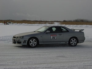 普段氷の上をほとんど走らないことから(凍ってる時はなるべく車に乗らない)、慎重に慎重にブレーキングしまずはグリップ走行できるかどうかやってみようかと1つめのコーナー・・・ハンドル切っても曲がりませんどころか、アンダーにすらならず「直進」。いきなりさっきここだけはやばいと思った雪山に突っ込みかけます。アクセル全開でパワーオーバーを狙ってもなにも食いつかず全然無反応。んー、一周目でいきなりやっちゃったかな?と思いましたが、フル制動でなんとか止まり助かりました。その後もコースをのろのろと走ってみますが、すべてのコーナーでアンダーか直進・・・。正直言って