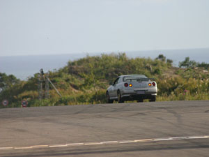 がスタート後二周は忘れていたタイヤの状態を、三周目から痛感し始めます・・・というか温感1.9で空気圧あわせたのですが、もう三周目で熱ダレが酷い。自分もフラフラだし、前走ってる二台も後ろから見てると結構ぎりぎりの領域に見えました。これ以上熱くなると完走すら危うくなりそうだったので(路面温度が思った以上に高かったのか、自分の運転がラフでタイヤに負担をかけてるのか・・・多分両方だと思うのですが)、その後は前後に車も居なくなりつつあったので、若干ペースを落として走りました。
