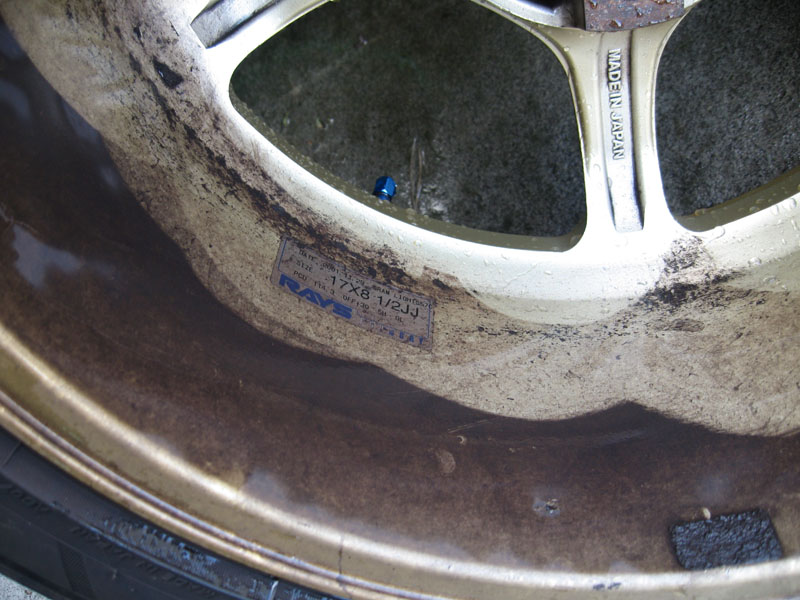 2005年9月23日のスカミ前に一回ホイルを車から全部外して綺麗に洗ったときにはまだ何ともありませんでした。