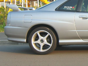 一般的に言えば、「・・・これ下がってるのか???」って感じでしょうが(>_<)、これでも実は結構下がった方なんです(^_^;。3cm近く下がってます。ダウンサス入れる前は、拳の他に指三本くらい入りそうな勢いでしたが、今は拳がぎりぎりはいるか入らないか位までは一応下がってます。