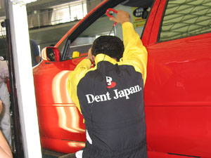 なお、塗装がはげるような傷だと普通の板金屋産でやっても料金変わらない(ここに頼んでも安くない)そうですが、塗装にはダメージ無く少しへこんだと言うときには非常に助かる存在だと思います。