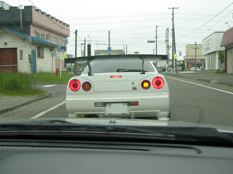 ま〜ちゃんさんは今回顔出しのみでしたので離脱。 白老サーキット向かう途中の信号待ちでなんとなく車の中から前を走るいなぴーさんのBNR34を撮ってみました。ウイング高くていいなぁー、と思って。私はモロにウイングがルームミラーの「真ん中」に来るので、後方視界悪いのなんのって・・・。んー、ウイング自体は今のままでも良いんだけど、ハイマウントステーが欲しくなる今日この頃・・・(-_-; |