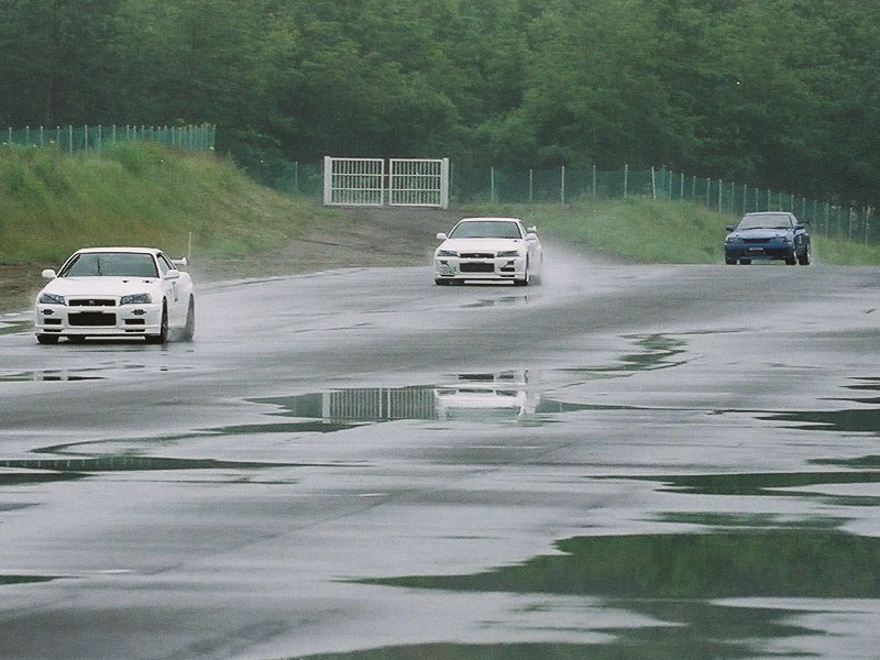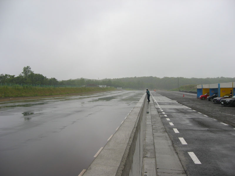 路面状況は、サーキット側発表で「ライトウェット」(?)だったようですが、コースには水がかなり浮いてるし、んー、なんだかなぁ・・・と言った感じです(>_<)。ただ、今回は雨だったので、見学料はタダで良いとのことで、無料で見学することが出来ました。おまけに車が少ないので走行する人しか本来は止められない場所(名前なんて言うのか分かりませんが)にみんな停めて良いとのことで、雨でしたがちゃんと屋根のあるところに車停めれてラッキーでした(^_^;