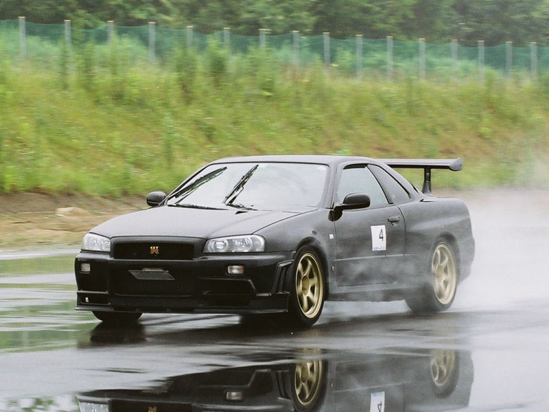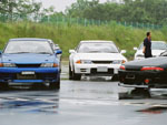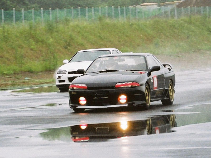 本番走行では、最後のヘアピンでマフラーから火を噴いてるのを目撃しました。す、凄いなぁ〜と思って直線に目を向けると、前を走っていたS2000を内側から(ライン外して)抜きに行ってるし!。もー、私には想像もつかないくらい凄いことしてるなぁ〜、と驚愕しました(雨なのに・・・)。