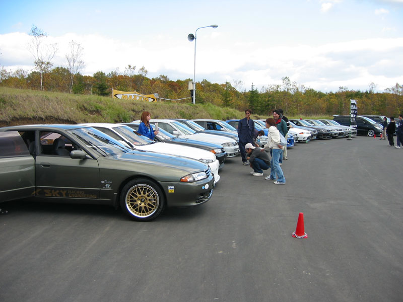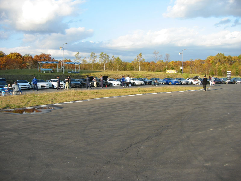 コンテストも終わり最後まで残っていたS.O.Eの面々もそろそろ「お〜みやさん VS ネプさんの1000円カートバトル!」のため、会場から駐車場の方に移動することに・・・なったのですが、ここからがS.O.E真骨頂!(?)。腕に覚えのある方は、(NCMLは公認ドリフト場なので)ドリフトしながらの移動!!!