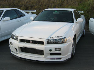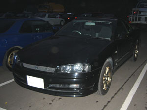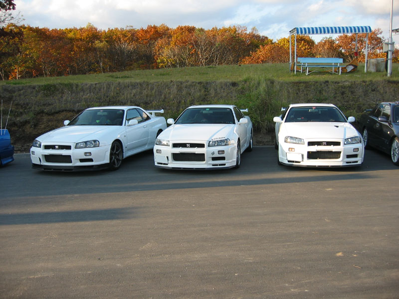 もうこの頃は朝から寒風にさらされた影響かだいぶ疲労困憊状態でしたが、POOHさん、ゆうとさん、かっきーさん、REIさん(&彼女)、タカヤスさん、あもんさん、私の8名で温泉に向かいました。駐車場で、「・・・んー、なんか見たこと有る白のBNR34が三台・・・?」。