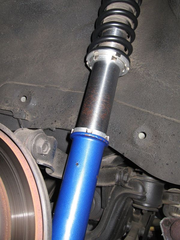 物自体の質が非常に良いのか、あるいはテインの車高調用スプレー(Rust Proof)が効いてるのか(多分両方が理由として有るのだと思いますが)、一年使ったとは思えないくらい綺麗なんじゃないでしょうか。この一年、多分かなり酷使してきた割にはへたりも少ないですし(ちょっと収束が遅くなってきてる「かも」なぁ?と言う程度)、非常に良い製品であると思います(サーキットさえ走らなければ果てしなく持ちそうな気がします(車高調壊れる前に車が限界になるような気がする))。